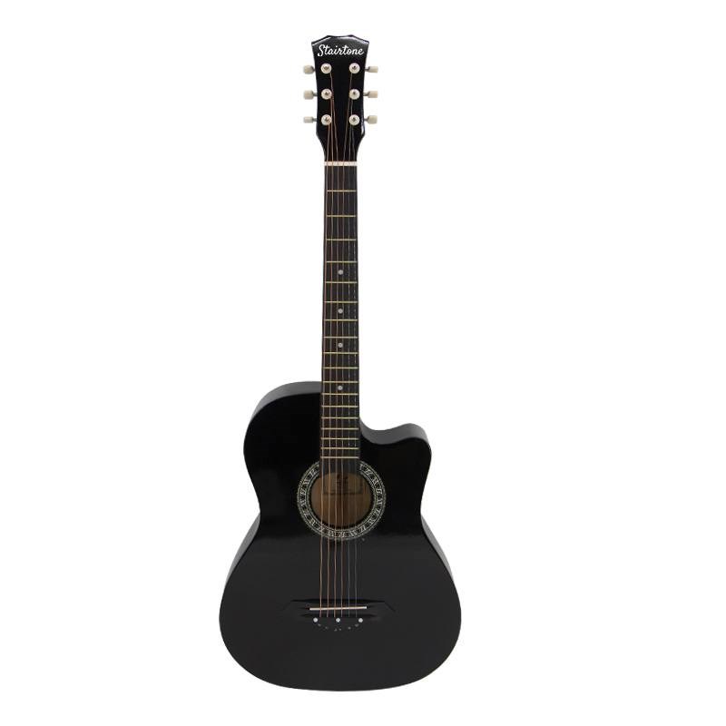 Stairtone A-38C BK – бюджетная акустическая гитара в корпусе нестандартной для недорогих инструментов формы «фолк» (38 дюймов). Эта модель подойдет начинающим музыкантам и обучающимся игре на инструменте. Гитара легко настраивается и надежно держит строй, стильно выглядит и хорошо звучит. Это универсальный инструмент, который отлично проявит себя в разных музыкальных стилях.